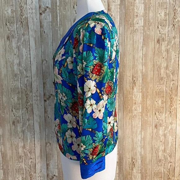 Diane Freis Vintage 80s Floral Silk Blouse With Gold Buttons