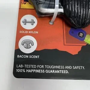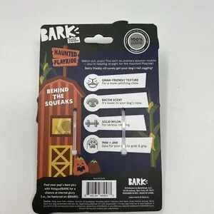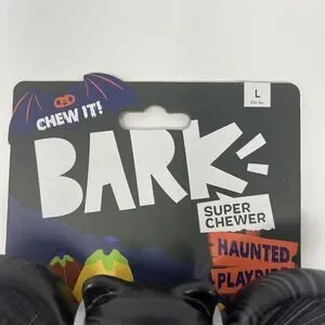Cute little bat nylon chew for 50+ pounds. If you have a smaller dog they can chew on the edges which is why I have said that this is OK for medium to extra large dogs. This also comes with a collar slider bow. The theme of this is Halloween colors and a bat