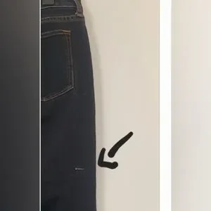 There is a small flaw shown in one of the pictures. It is not that noticeable when jeans are on.