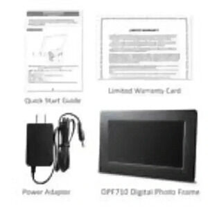 Features: 7'' high-definition digital LCD screen displays photos capitally Play photos Slide show, step show, enjoy your photos in diversification Multiple transitional effect and slide show interval time Thumbnail and file manager mode Rotate photos to desired direction Compatible with SD/SDHC cards USB host to read various external devices Calendar, Clock functions Shortcut button operation Specifications: TFT LCD type: Digital Screen dimension: 7inch (16:9) Resolution: 1024x600 pixels Support photo display Support Memory Card Type: SD/SDHC USB connection: USB host Power supply: AC 100~240V DC 5V Accessories: Quick start guide AC adapter Warranty card