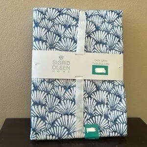 Sigrid Olsen Tablecloth Blue White Nautical Shell 60”x104” New Oblong