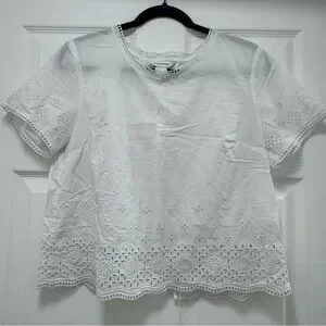Breezy cotton and delicate embroidered eyelet detail come together in this elevated boxy tee.
