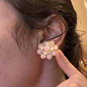 Vintage crystal frosted glass bead pearl gold clip on earrings necklace charms