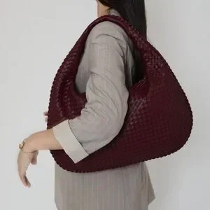Elevate your style with this elegant woven leather hobo bag. The rich burgundy color adds a touch of sophistication to any outfit. Perfect for everyday use or special occasions. NEVER USED.