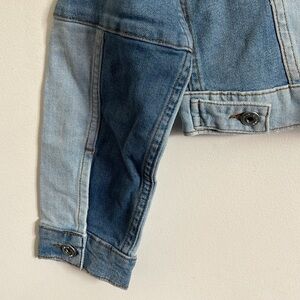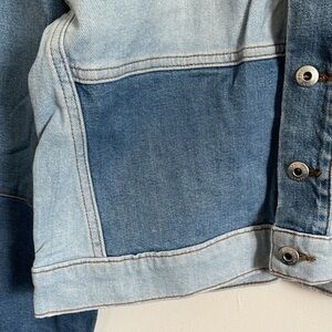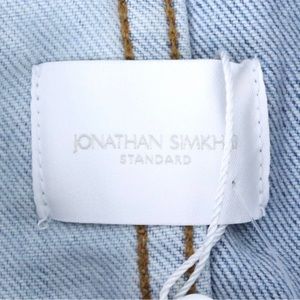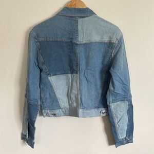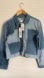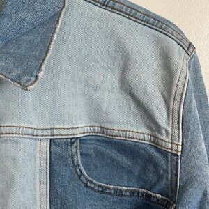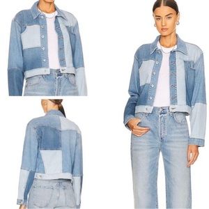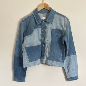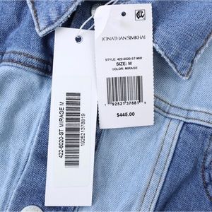 JONATHAN SIMKHAI STANDARD Mirage Patchwork Distressed Denim Blue Jean Jacket