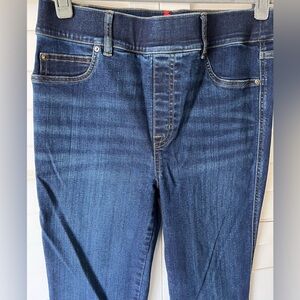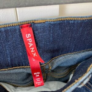 Excellent condition Spanx flare jeans. Faux front pockets with functional back pockets. Midnight shade wash, style #20327R. Size medium, measurements in photos.