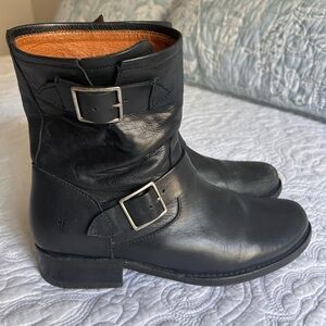 Black Combat Boots with Silver Buckles