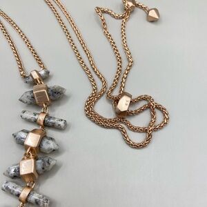 Kendra Scott Samantha necklace in granite and rose gold. Great condition, minimal wear, no tarnish. Slider adjusts long to short.