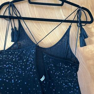 Free People Intimately Black sequin tie shoulder Mini Dress M