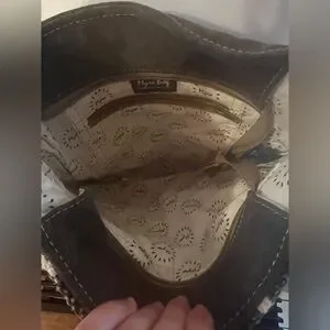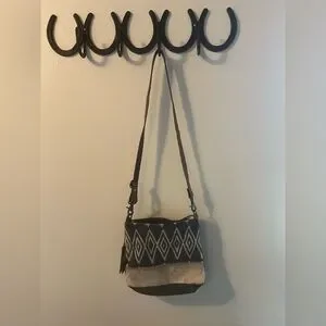 Cute bag, and fantastic condition because it has never been used. Cowhide with fur detail on the bottom.