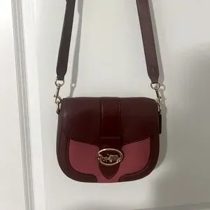 Coach Georgie Saddle Gold/Cherry Multi Colorblock Flap Crossbody