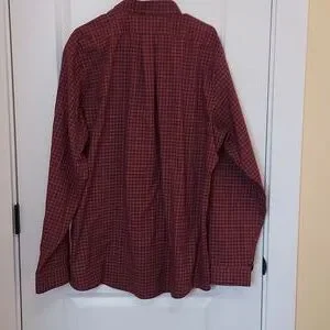 *Eddie Bauer Men's Burgundy Red with Black and Cream Checkered Shirt Size TXL