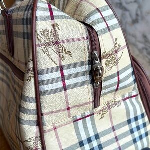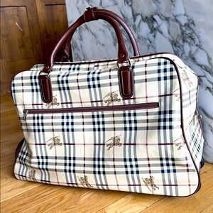 Vintage Burberry of London 48h Classic Haymarket Travel Duffel Bag with Wheels.