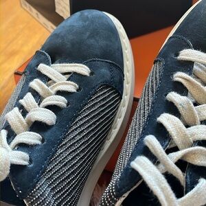 Quiet and very Luxury brand, Brunello Cucinelli sneaker. The blue suede with overall Monili sneaker is in great condition! Retailed for $1,500.00. Now's your chance to buy - very good condition!