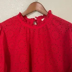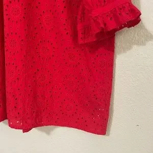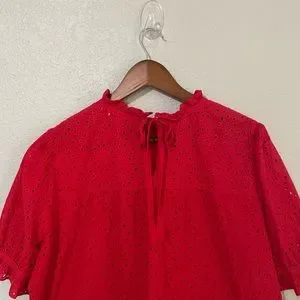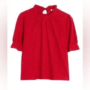 Madewell Plus Size Embroidered Eyelet Ruffle-Neck Keyhole Top