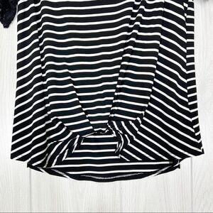 Umgee | Black And White Tie Front Lace Short Sleeve Tee Size Medium