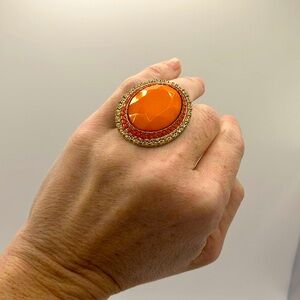 Vibrant Pink and Orange Ring Set with Floral Design stretch rings 2/$20🎉