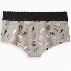 WIDE LACE TRIM BOYSHORT PANTY - COTTON HEARTS 💕 & BOLTS 🌩HEATHER GREY