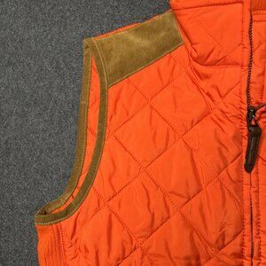 Ralph Lauren Sport Equestrian Crest Quilted Vest Orange Tan Suede Trim Womens SM