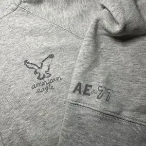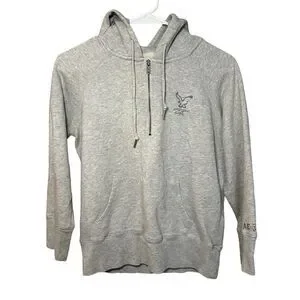 American Eagle Hoodie Women Size M Gray Pullover Preppy Academia AEO Est 77 Y2K