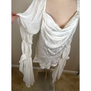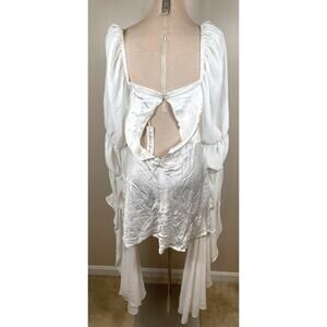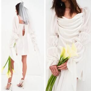 For Love & Lemons Willow White Draped Cowl Neck Puff Sleeve Mini Dress S…