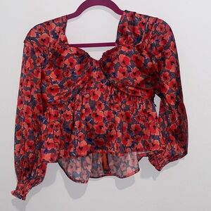 House of Harlow Red Poppy Floral Blouse