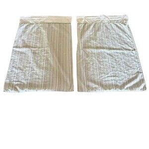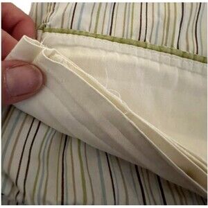 While all pillowcases have some wear on the trim fabric due to creases, fading, and some tiny pinhead size holes around the creases and edges, the striped pair has slightly more wear with some fraying on an edge seam and some dinginess to the white fabric trim. Please refer to the pictures for more details.