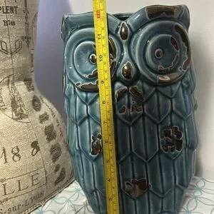 Ceramic Blue and Gold Owl vase when you purchase get free owl dish chipped