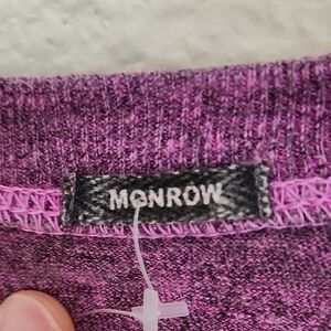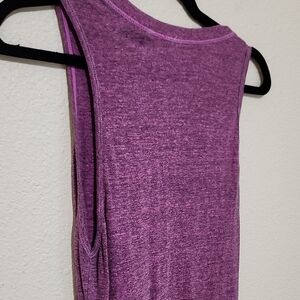 This Monrow dress features a vibrant purple hue and a stylish ruched design, offering a flattering fit. The tank top style with a scoop neckline adds a casual yet chic touch, making it perfect for versatile wear. Its midi length and form-fitting silhouette make it an ideal choice for both casual outings and layering.