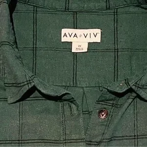 Ava & Viv green plaid checkered flannel 2X plus sz. button up