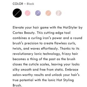Cortex Beauty 1.5" Ionic Brush Hot Styler Excellent In Box Black. Like new condition in original box!
