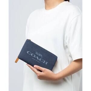 COACH DENIM Blue Large corner zip wristlet with signature coach on front
