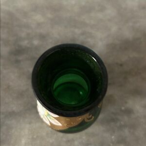 Bohemian Vintage Cobalt blue miniature glass vase, 24k gold enamel green
