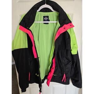 Vintage 90's Columbia Rain Sport Ski Zip-up Powder Keg Jacket Black Green Large
