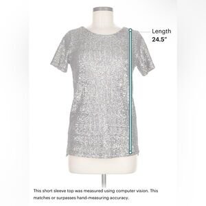 NWOT - This dazzling silver t-shirt from Velvet features a round neckline and short sleeves, adorned with shimmering sequins for a glamorous look. Perfect for festive occasions, the top's reflective surface catches light beautifully, making it a standout piece in any wardrobe.