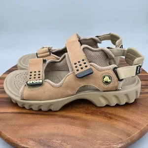 Crocs Yukon Sandals Men's 9 Brown Leather Adjustable Strap Sport Outdoor Comfort
