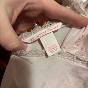 Indulge in the luxurious feel of this Victoria's Secret chemise, crafted in a soft pink hue. The delicate lace neckline adds a touch of romance, while the silky fabric drapes beautifully for a comfortable fit. Perfect for a serene night's sleep or a relaxing evening at home.