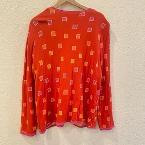 Gudrun Sjoden Orange Geometric Knit Cardigan XXL – Boho Lagenlook Style