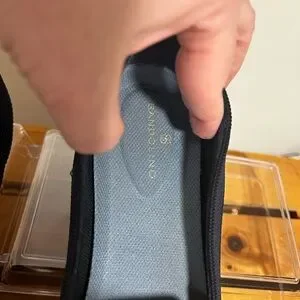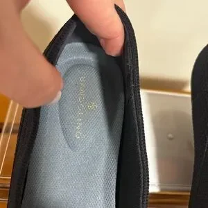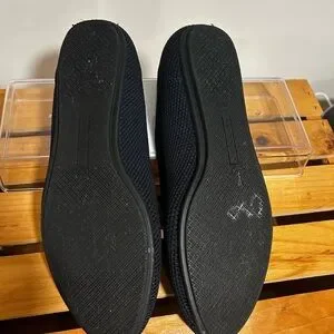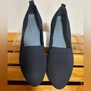 New. Never worn. Elegant and comfortable navy blue knit slip-on shoes perfect for any occasion. Enjoy the sleek design and versatile style.