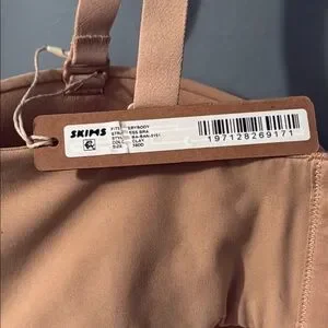 New with tags, 38DD SKIMS Fits Everybody Strapless Bra in Clay (Nude/Tan). A buttery-soft strapless solution with a second-skin fit and hidden cushion underwire that supports and shapes your bust but never digs into your skin. Features removable, adjustable straps that can be worn multiple ways, silicone tape along the 2-ply wings to keep it in place, and a hook and eye back closure. Fits true to your SKIMS bra size.