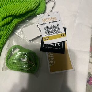 Stunning! Definitely stand out in the cut out one piece Michael kors green bathing suit. Brand new. Wear as one strap or 2. Perfect for summer!! Size 14