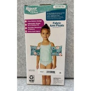 Aqua Swim School Perfect Fit Fabric Adjustable Arm Floats Level 3, designed for swimmers weighing between 40-80 lbs. With adjustable straps, these arm floats can be customized to fit your specific needs and provide the perfect amount of buoyancy to help you stay afloat while you focus on your training. Condition is NEW IN BOX.