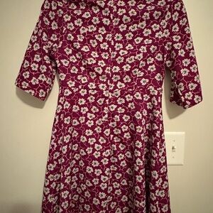 Charming dress featuring a vibrant red floral pattern with white accents. Perfect for any occasion.