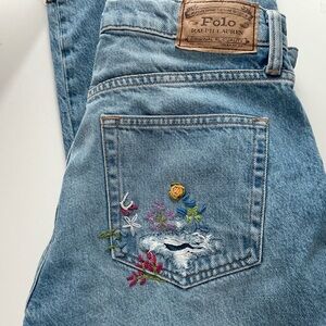 This stylish and comfortable jean is designed for a mid-rise and a roomy silhouette through the legs. Cut with right-hand cotton twill, this vintage-inspired pair is defined by hand-sanding, rip-and-repair patchwork, and floral embroideries