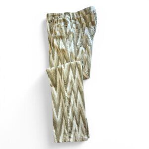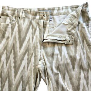 Chicos Platinum Denim Ultimate Fit 2.5 Reg Tan & White Ikat Print Jeans US 14
