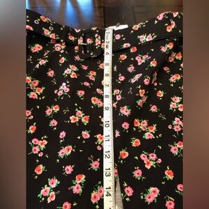 NWT Zara Straight Black Floral Midi Skirt with Belt and Front Slit