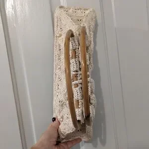 -Excellent vintage condition, marks on bottom of bag, crochet missing on one of the loop closure ties (see last 2 photos)