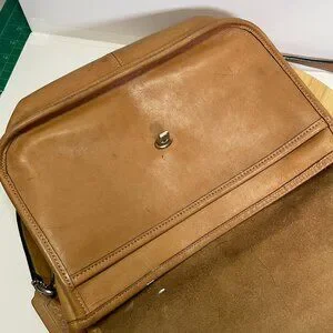 Vintage Coach 9790 City Bag Tan Leather Purse Shoulder Crossbody Brass Kiss Lock