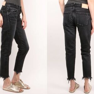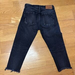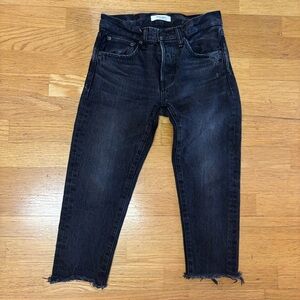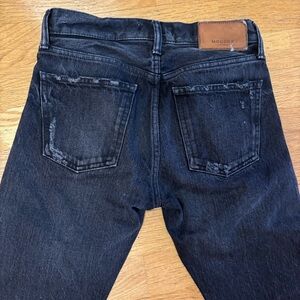 A pair of black tapered leg jeans from Moussy. Appear to be brand new without tags. Size 24.