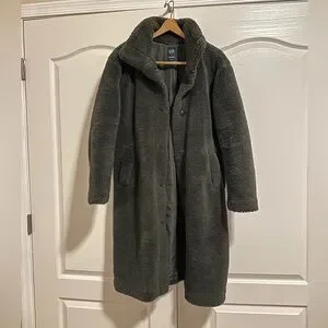 Full length sherpa coat. Dark forest green. Hardly worn and in great shape, like new. Size small.